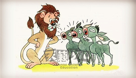 憔悴的狮子变了样,给这个让路,给那个闪道,往日的雄风荡然无存。没过几天,野兽们就听见从狮子洞里传出了“呃啊”的驴叫声。
